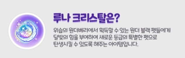 → 루나 d진 펫은 자석 기능이 없으며, 이후 루나 크리스탈 재합성 불가