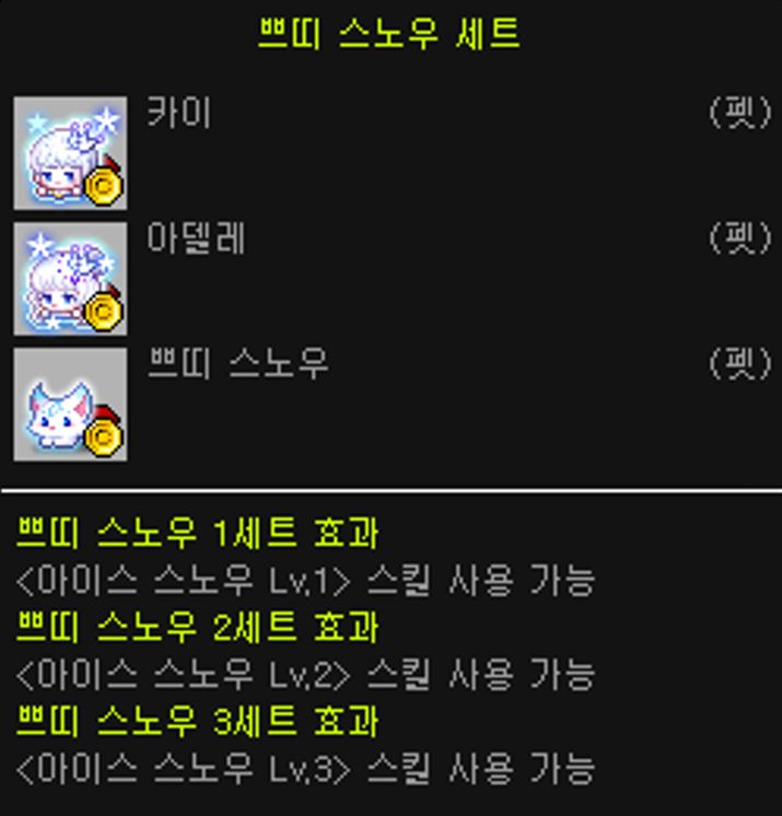 | 기능 | 넓은 범위 아이템/메소 줍기, 세트 효과 |